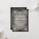 Les invitations en bois rustiques de mariage campagnard vue par cru avec un arrière - plan en bois affligé de grange grise avec le cadre fleuri blanc de flourish de remous conçoivent autour de lui. Ce sont grands pour des mariages occidentaux de pays, des mariages vintages, et des mariages campagnards rustiques.