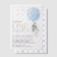 Invitations amis et famille dans le style et donner le ton pour votre journée spéciale avec cette charmante invitation d'anniversaire. Le design comprend un ballon bleu avec des feuilles d'eucalyptus.