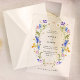 Cette faire-part de mariage en vellum transparent simple et boho est ornée d'une couronne de fleurs botaniques colorées et de feuilles - en bleu, violet, rose, orange, vert et blanc. Un look rustique et lumineux pour votre mariage de printemps ou d'été.