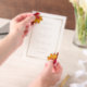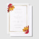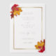 Faire-part de mariage automnal en vellum avec feuilles d'automne et cadre doré rustique.