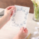 This classic and romantic design is a modern adaptation of an historic French etched frame of dusty blue intertwined roses, flowers, foliage and ribbons ca 1770 by Rococo designer Pierre Ranson. It includes customizable text fields.