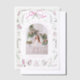 Coquette Christmas Family Photo Whimsical Pink Green Doodle Vellum Holiday Card Vellum Christmas Card est doté de votre photo préférée avec un cadre floral moderne et fantaisiste en rose et vert avec un arc rose et personnalisé avec votre texte personnalisé et personnalisé avec votre nom de famille. Parfait pour la famille et les amis pour Noël et les vacances. Conçu par Evco Studio www.zazzle.com/store/evcostudio