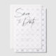 Annoncez votre journée spéciale en style avec ce Mariage de manutention moderne Overlay Save the Date Vellum. Doté d'un élégant script sur une couche de vellum transparent, ce design chic et contemporain apporte une touche sophistiquée à votre papeterie mariage. Le vellum est une belle addition à superposer sur du papier texturé spécialisé, une photographie ou des feuilles de fleurs pressées. Cela donne à votre créativité le temps de briller. Contactez info@lddesignloft.com si vous avez besoin d'aide avec ce modèle. ©lorenadepante
