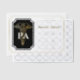 "PA" et un caducée doré sur un panneau de cadre noir à pétoncles sur la gauche avec vos détails sur la droite, le tout entouré d'un cadre à deux pétoncles de couleur or sur un design d'invitation claire arrière - plan graduation qui peut être personnalisée pour les diplômes d'assistant de l'école de médecin. Conception composite par Holiday Hearts Designs (droits réservés).