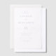 This elegant wedding invitation features a clean, minimalist design with a soft lavender color palette and black accents for contrast. The layout is centered and vertically oriented, emphasizing clarity and simplicity through ample white space and sophisticated typography. Decorative stars subtly embellish the address line, adding a touch of charm without overwhelming the refined aesthetic. Perfect for couples seeking an understated yet formal look, this invitation conveys sophistication and sets the tone for a memorable celebration.