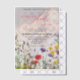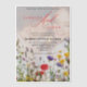 Le design comporte une photo floue du couple dans l'arrière - plan. Le fond de l'invitation est décoré d'une bordure de fleurs sauvages colorés, dont des pavots rouges, des fleurs violettes et des fleurs jaunes, créant une atmosphère naturelle et romantique qui complète l'image vellum et arrière - plan.