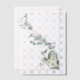 Ce design botanique unique présente une branche incurvée d'élégants feuilles d'eucalyptus à l'aquarelle avec des feuilles argentés artistiques et des fleurs sauvages blancs.