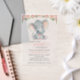 Célébrez l'arrivée prochaine de votre lot de joie avec cette invitation baby shower élégante. Le design présente des fleurs d'aquarelle rose (roses et pivoines), des feuilles verts et des petits éléphants.