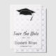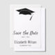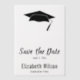 ''Enregistrer la date'' pour une fête de remise de diplômes avec ce noir et blanc enregistrer la date. Vous pouvez le personnaliser avec le nom du diplômé et la date du parti. Le casquette d'un diplômé se trouve en haut du texte.