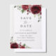 Invitations amis et famille dans le style et donner le ton pour votre journée spéciale avec ce charmant enregistrer la carte de date. Le design présente des fleurs d'aquarelle bordeaux et de la végétation.