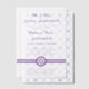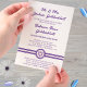 Ajoutez une touche d'élégance aux invitations Bat mitzvah de votre fille avec ces invitations en papier glam vellum violet personnalisés par vous. Conçues avec un mélange de polices de style traditionnel dans un violet royal foncé et une police de caractères stylisés, ces invitations personnalisées en vellum sont complétées par une bande décorative et un motif de type sceau au fond avec une fausse parties scintillant violette Star Of David. Créez les invitations Bat mitzvah violettes parfaites à partir de ces papiers de velours pour un invitation de bonne qualité.