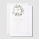Un beau design baptiste avec des olives aquarelles et verdure et une Croix d'or. Un design religieux idéal pour le baptême de bébé garçon ou fille. Les articles de papeterie et la décoration correspondants peuvent être vus dans la collection de ce design.