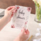 Chic botanique petite fille douche invitation vellum comprend de jolies fleurs roses et de la verdure rustique sur un arrière - plan translucide rose vif féminin. Cette belle invitation peut être posée sur un boîtier carte photo ou rsvp vendu séparément.