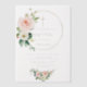 Luxury Pink Blush Floral Gold Cross Baptism Vellum Invitations. It features watercolour white, cream, blush pink flowers, faux gold round frame, floral divider, all on a transparent vellum background. Use Personalize tool to add your info. For matching items, please, visit my Religious Vellum Invitations Collection.