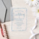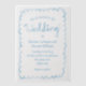 Apportez un sentiment d'émerveillement joyeux à votre grand jour avec notre modèle prêt-à-personnaliser *Whimsical Light Blue and White Vellum Faire-part de mariage*! Conçu pour capturer l'esprit ludique de votre histoire d'amour, cette invitation charmante présente un cadre illustré à la main en bleu doux sur un arrière - plan transparent. Que vous planifiez une fête dans le jardin, une aventure au printemps ou que vous souhaitiez simplement partager votre bonheur d'une manière fraîche et créative, ce modèle le rend très simple. Qu'est-ce qui le rend si spécial ? - Whimsical & Fresh Design : Une palette de couleurs claire et aérée et des éléments originaux dessinés à la main infument chaque invitation avec joie, romantisme, et un soupçon de jeu. - Entièrement personnalisable en ligne : personnalisez votre texte, vos polices et votre disposition en quelques minutes. Il est facile de faire en sorte que ce design reflète votre propre voix et votre propre style. Ce modèle faire-part de mariage conviendra parfaitement aux couples qui souhaitent célébrer l'amour avec personnalité, charme et originalité. Le papier de velours translucide ajoute une touche douce et luxueuse, transformant votre faire-part en souvenir que vos invités apprécieront.