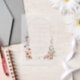 Cadre gracieux en arc doré avec élégants parchemins agrémentés de fleurs sauvages pastel chic boho romantique en bleu pâle, rose et jaune. Cette charmante collection est le complément parfait à votre mariage sur le thème du printemps, de l'été ou du jardin.