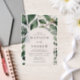 Annoncez votre mariage dans le style grâce à nos invitations à cadre d'arc vert abondant, avec vos détails mariages nichés dans un cadre gracieux voûté, entouré d'eucalyptus luxuriants, fougères, et une végétation riche sur un arrière - plan pur velours. Parfaites pour toutes les saisons, ces invitations de mariage botaniques allient élégance naturelle et sophistication moderne, créant une introduction inoubliable à votre journée spéciale.