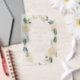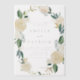 Cette faire-part de mariage en velours présente une délicate couronne florale dans des tons doux d'ivoire et de crème, accentuée de détails verdoyants et de fausse feuille d'or. Imprimé sur du papier vellum translucide, ce design offre un look moderne et stratifié qui se sent à la fois léger et élégant. Les couleurs douces et neutres se marient harmonieusement avec des thèmes rustiques, de jardin ou mariage intemporels. La couronne fleurie encadre vos détails mariages d'une manière raffinée et sobre, tandis que les accents dorés ajoutent juste la bonne touche de brillance. Mettez facilement à jour le texte pour créer une invitation qui correspond parfaitement à votre journée.