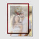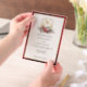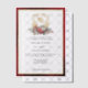 Un design mariage intemporel, élégant et festif, sur le thème des fêtes, orné d'une crête florale en or dessinée à la main, agrémentée d'un spray coloré de fleurs de Noël rouges et blanches et de verdures sur un papier vellum semi-opaque. Ce modèle formel personnalisé comprend des champs de texte modifiables ainsi que des graphiques de texte de calligraphie personnalisés et une bordure texturée rouge et or.