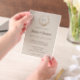 Cette faire-part de mariage de superposition en velours rustique est dotée d'une couche supérieure translucide imprimée avec vos noms, des détails mariages et une couronne monogramme d'inspiration occidentale. Conçu pour calquer sur un carte photo ou une invitation séparé. Une touche parfaite pour les mariages en ranch, en campagne ou en plein air avec un thème rustique ou cowboy-chic.