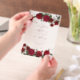 Une belle couleur rouge bordeaux rouge aquarelle rose florale design imprimé sur vellum superposé. Un élégant design botanique rouge marron idéal pour tout thème mariage. Le verso de la carte présente un monogramme minimaliste. Des articles de papeterie mariage correspondants et d'autres formats d'invitation de mariage sont également disponibles.