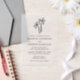 Donnez le ton pour votre destination ou mariage à la plage avec cette invitation moderne en vellum noir et blanc. Doté d'une illustration de palmier dessinée à la main au sommet d'un simple arrière - plan de vellum, ce design minimaliste apporte une touche d'élégance tropicale à votre journée spéciale. Les couples peuvent personnaliser le devant avec leurs noms et leurs détails mariages. Idéal pour les mariages tropicaux, les cérémonies côtières ou les mariages d'été.