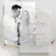 Faites une première impression éblouissante avec cet élégant faire-part de mariage en vellum, avec l'expression "le mariage de" en calligraphie or sophistiquée sur un arrière - plan en vellum pur. Personnalisez-le avec vos noms et détails mariages en lettres dorées, ajoutant une touche de luxe intemporelle à votre journée spéciale. Parfait pour des événements de cravates noires, des fêtes romantiques ou des soirées glamour, ce design polyvalent vient compléter les mariages de tout style ou saison avec son élégance moderne et son charme classique.