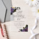 Des bouquets de fleurs violettes et d'ivoire profondes, des feuillages verdoyants et des baies sombres disposés à chaque coin, le tout contre un arrière - plan de vellum. "Le Mariage de" est magnifiquement exposé dans une typographie élégante et moderne, ajoutant une touche sophistiquée au design. Parfait pour les mariages romantiques ou formels, ce faire-part de mariage fleuri violet peut être personnalisé avec vos noms et détails mariages pour créer une introduction unique et mémorable à votre journée spéciale.