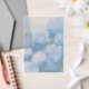 Peinture semi-transparente d'hortensias bleus pour superposition de faire-part de mariage en vélin