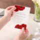 Invitations de mariage rouge gerbera ou gerber marguerite fleur vellum. Simple et moderne.