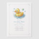 Ajoutez une touche d’élégance à votre premier anniversaire de naissance avec cette adorable invitation "One Lucky Duck" en velours ! Doté d'un canard en caoutchouc gai éclaboussant dans de l'eau mousseuse et encadré d'une délicate bordure pastel, ce design translucide allie un charme doux pour bébé à un style sophistiqué. Idéal pour des fêtes d’anniversaire inspirées du canard ou du bain, il est entièrement personnalisable pour votre célébration.