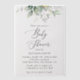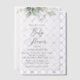 Invitations amis et famille dans le style et donner le ton pour votre journée spéciale avec cette charmante invitation baby shower. Le design présente des feuilles d'eucalyptus et de la verdure.