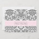 Les invitations personnalisées de baby shower dans la lumière élégante et moderne rougissent le motif floral classique et vintage de rose, gris et blanc de damassé. Personnalisable avec votre texte, contactez-nous pour demander un changement de couleur.