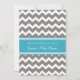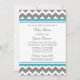 Invitations personnalisées de baby shower dans le bleu de paon élégant et moderne de turquoise, le gris de charbon de bois foncé et le motif de zigzags de chevron d'amusement de blanc. Personnalisable avec votre texte, contactez-nous pour demander un changement de couleur.