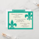 Ces invitations élégantes sont ornées de deux symboles de la Fleur de Lis et sont parfaites pour tout événement, depuis les douches nuptiales jusqu'aux fêtes du dîner jusqu'aux fêtes de l'anniversaire. L'hôtel est décoré avec des symboles Emerald Fleur de Lis et une bordure sur un arrière - plan beige clair. Visitez www.zazzle.com/enchantedbayou* pour découvrir les cartes, invitations et cadeaux thématiques de la Nouvelle-Orléans et de Cajun. L'invitation est entièrement personnalisable.