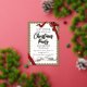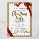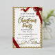 Célébrez votre fête de Noël d'entreprise, le Nouvel An et la saison des Fêtes avec cette invitation de Noël d'entreprise avec une scène de Noël classique - arbres, maisons, ruban rouge, présent, typographie or.