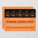 Jack O'Lantern Citrouille Silhouette Halloween Citrouille Carving Party Invitation (Orange / Noir)...Ces invitations d'Halloween amusantes et festives sont la meilleure façon pour les amis et la famille invitations pour une soirée de sculpture citrouille Halloween. Entièrement personnalisable...entrez simplement vos informations et vos invitations Halloween sont prêtes à être envoyées. Le design comporte un certain nombre de silhouettes citrouilles mignonnes jack o' lantern. Voir WindyCityStationery.com pour notre gamme complète d'invitations "Jack O'Lantern Citrouille Silhouette" ainsi que des timbres-poste, étiquettes, autocollants, cartes de notes et plus encore.