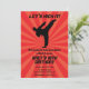 Faisons-le ! Cette invitation amusante présente un arrière - plan étoilé rouge et une silhouette de karaté. Parfait pour la fête d'anniversaire de karaté de votre enfant.