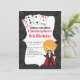 Commencez votre partie magique outre de la droite avec notre invitation magique de fête d'anniversaire de spectacle de magie comportant un magicien mignon réglé sur un arrière - plan noir de damassé avec une plate-forme des cartes. Entièrement personnalisable par vous avec votre information. ©Corazón Dulce