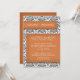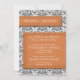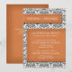 Invitations tendance et modernes pour votre Mariage. Dispose d'un dessin ou d'une illustration cousue orange sur un motif damassé noir et blanc. Des informations, des instructions ou des détails supplémentaires peuvent être imprimés au verso (facultatif).
