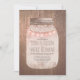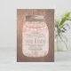 L'invitation au mariage campagnard rustique présente un pot en maçon vintage avec dentelle à l'ancienne et une chaîne de lumières roses. Romantique, invitation en bois en détresse pour votre mariage de grange rustique.