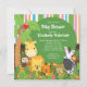 Commencez votre baby shower orienté de jungle outre de la droite avec notre invitation adorable de baby shower de safari d'animaux de bébé. Notre invitation mignonne comporte un arrière - plan d'impression de rayure avec un palmier, un perroquet, une girafe, un lion de singe, un tigre et un zèbre réglés sur une feuille de jungle avec l'arrière - plan de fleurs. La coordination de retour de cette invitation comporte le feuille de jungle avec le petit singe le plus doux ! Visitez notre magasin pour regarder cette conception dans différentes variations et de l'assortiment merci des cartes de note, des timbres-poste et des autocollants. copies ©Pixal de papier