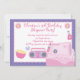 Commencez votre fête d'anniversaire d'assoupissement outre de la droite avec notre invitation mignonne d'anniversaire de pyjama comportant un sac de couchage rose réglé sur un arrière - plan de point de polka avec, une radio de pizza de maïs éclaté de rouge à lèvres de coussin, un vernis à ongles, des coeurs et des fleurs pourpres. Mignon pour une fête d'anniversaire de filles de tween de bonbon. Visitez notre magasin pour regarder d'autres invitations modernes élégantes de fête d'anniversaire de sleepover et en assortissant merci des notes, des autocollants et des timbres-poste. Conceptions de Babystar de ©