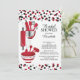 Le stock moderne l'invitation nuptiale de douche de cuisine comportant une goupille, bol mélangeur, spatule, coupeur de pizza, battent, l'éplucheuse végétale et les doseurs réglés sur un arrière - plan blanc contemporain avec les confettis rouges et noirs de point de polka. Visitez notre magasin pour regarder cette invitation dans une série d'invitations populaires de wedding shower.
