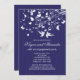 La belle invitation moderne de partie de fiançailles d'inséparables comportant une paire d'inséparables populaires de mariage avec un coeur et une branche d'arbre chic élégante a orné avec des papillons réglés sur un arrière - plan chic de rayure de goupille de bleu marine et de blanc. Visitez notre magasin pour assortir vous remercient des cartes de note, des autocollants et des timbres-poste.