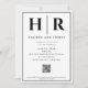 Présentant notre Mariage Monogram Simple Classic Minimal QR Code Invitation - un mélange exquis de modernité et de sophistication pour votre journée spéciale. Cette invitation économique est conçue avec une esthétique minimaliste, propre et simple, avec un jeu de couleurs noir et blanc classique qui respire une élégance intemporelle. L'inclusion d'un code QR intègre en toute transparence la technologie moderne, permettant aux clients de RSVP facilement avec juste un scan. L'invitation accueille également des photos fiançailles pour une touche personnelle, ce qui en fait le choix idéal pour les couples à la recherche d'une solution de faire-part de mariage chic et minimaliste qui allie sans effort tradition et commodité contemporaine.