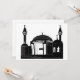 Ce design est une mosquée. La mosquée est en noir et blanc avec une architecture intéressante. Cette mosquée a l'air superbe sur cette invitation
