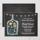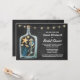 Invitations nautiques de douche nuptiale Chalkboard - présente un arrière - plan imprimé de tableau noir avec une bouteille nautique remplie sera hippocampes, étoiles de mer, coquillages et corail. La conception comporte également des lampes à cordes en haut.
