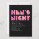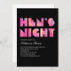 Invitations de la soirée moderne Hen's Night avec un design noir, rose chaud, bleu, jaune et rouge. Pour un plus brillant optez pour le papier métallique argenté.