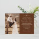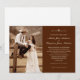 Invitations occidentales de photo de mariage avec un brun foncé et une conception blanche cassée. Personnalisez le texte et téléchargez votre photo de mariage.